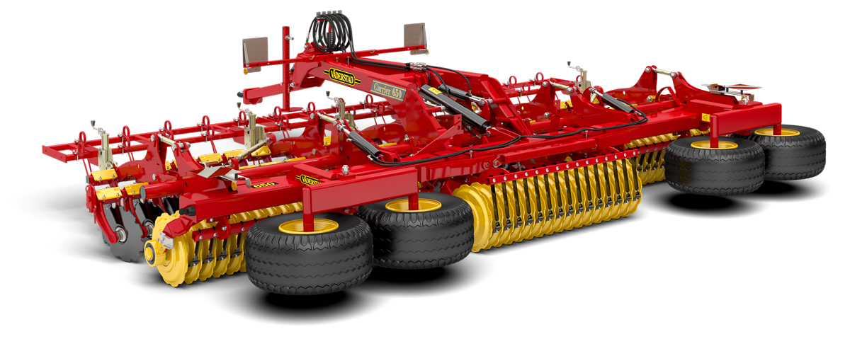 Carrier 420-820 is a trailed disc cultivator, available in working widths between 4.2 and 8.2 metres. It can be fitted with 450 or 470mm discs.