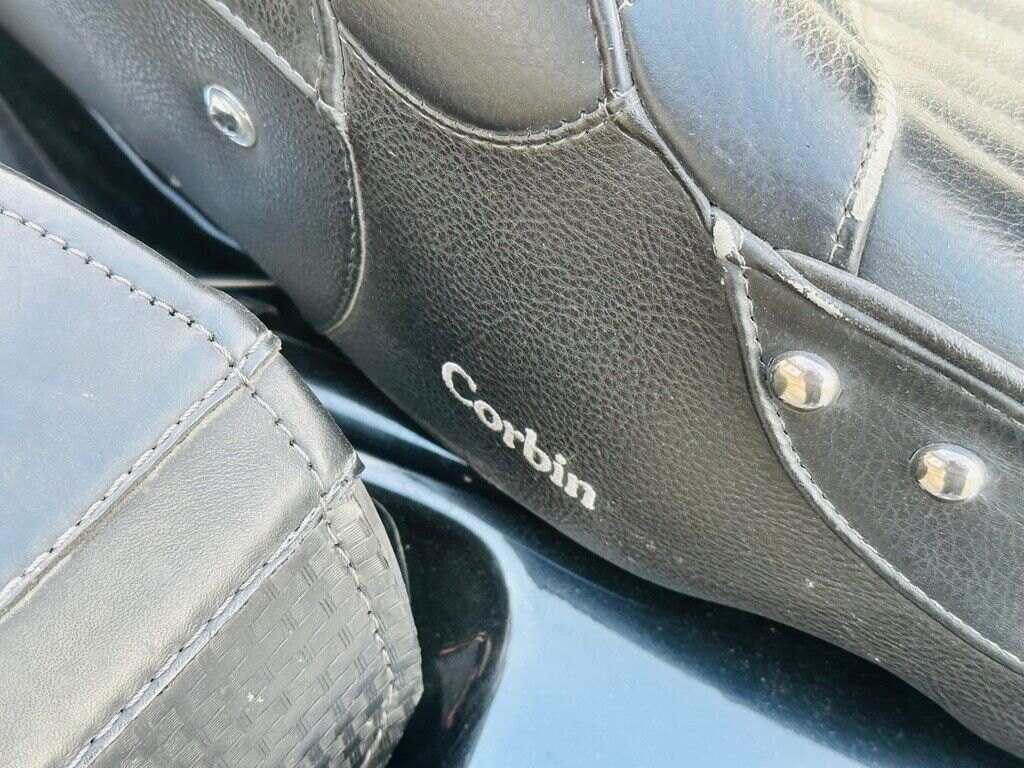 Road King 1450cc has a Corbin seat with studs, fog lights, light peaks, rear luggage rack, hwy pegs and battery tender harness. Certified with fresh oil & filter.