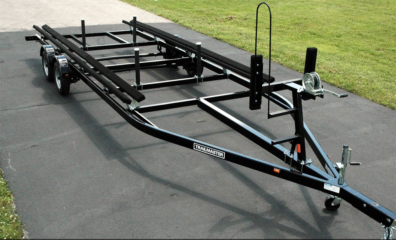 The drive on tube frame Wide Body design of these models yields a very stable road worthy trailer for bulky pontoon boats. A heavy duty ladder bow mount is incorporated into the design for safe and easy access. The heavy duty bunk support system insures full support for the pontoon tubes. All components are of the same rugged construction found on all custom Trailmaster’s.