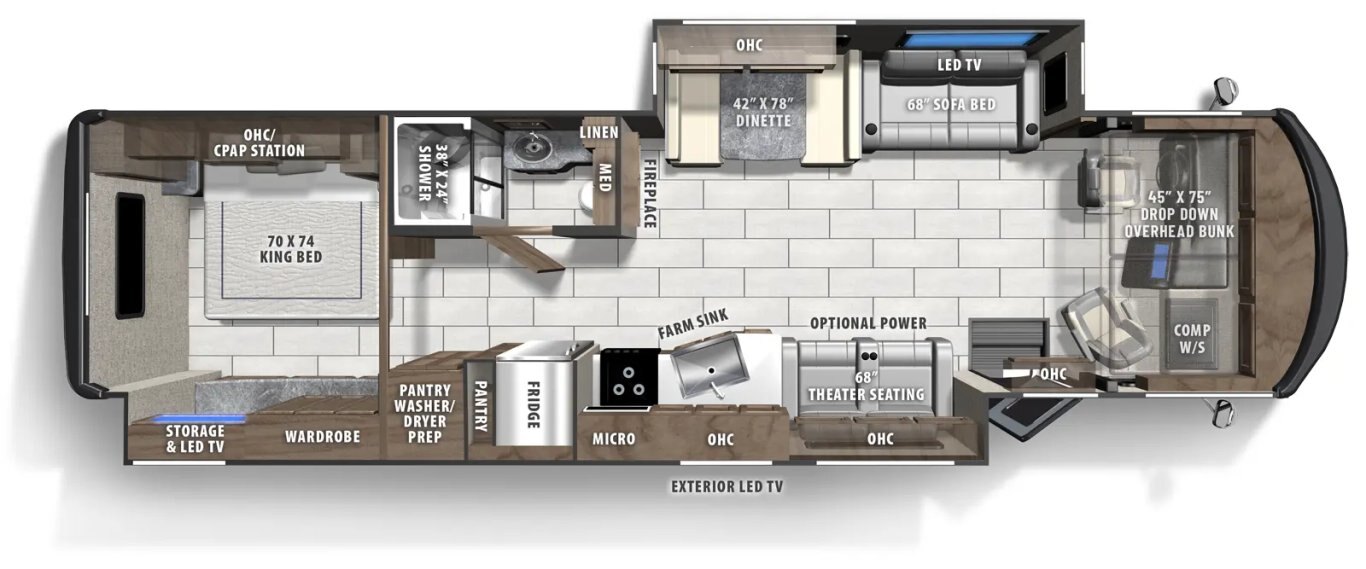 The Mirada comes with a suite of standard features that offer better comfort and more style than ever before. These new features are designed with you and your passengers in mind, so you’ll find the interior feels less like a vehicle and more like a home. Relaxing, comfortable, and spacious, the Mirada offers a sense of stability and sanctuary while you’re out on the road.