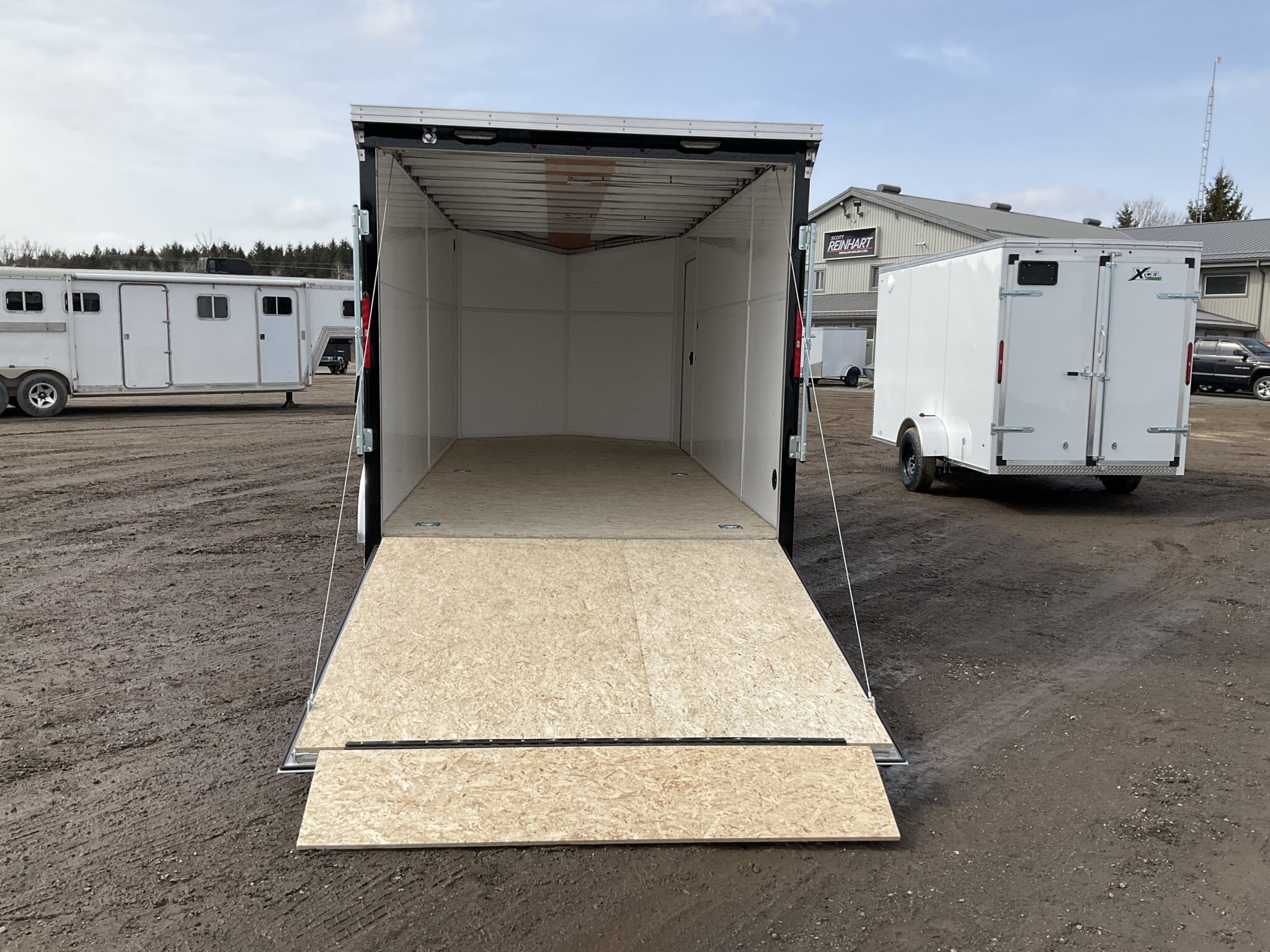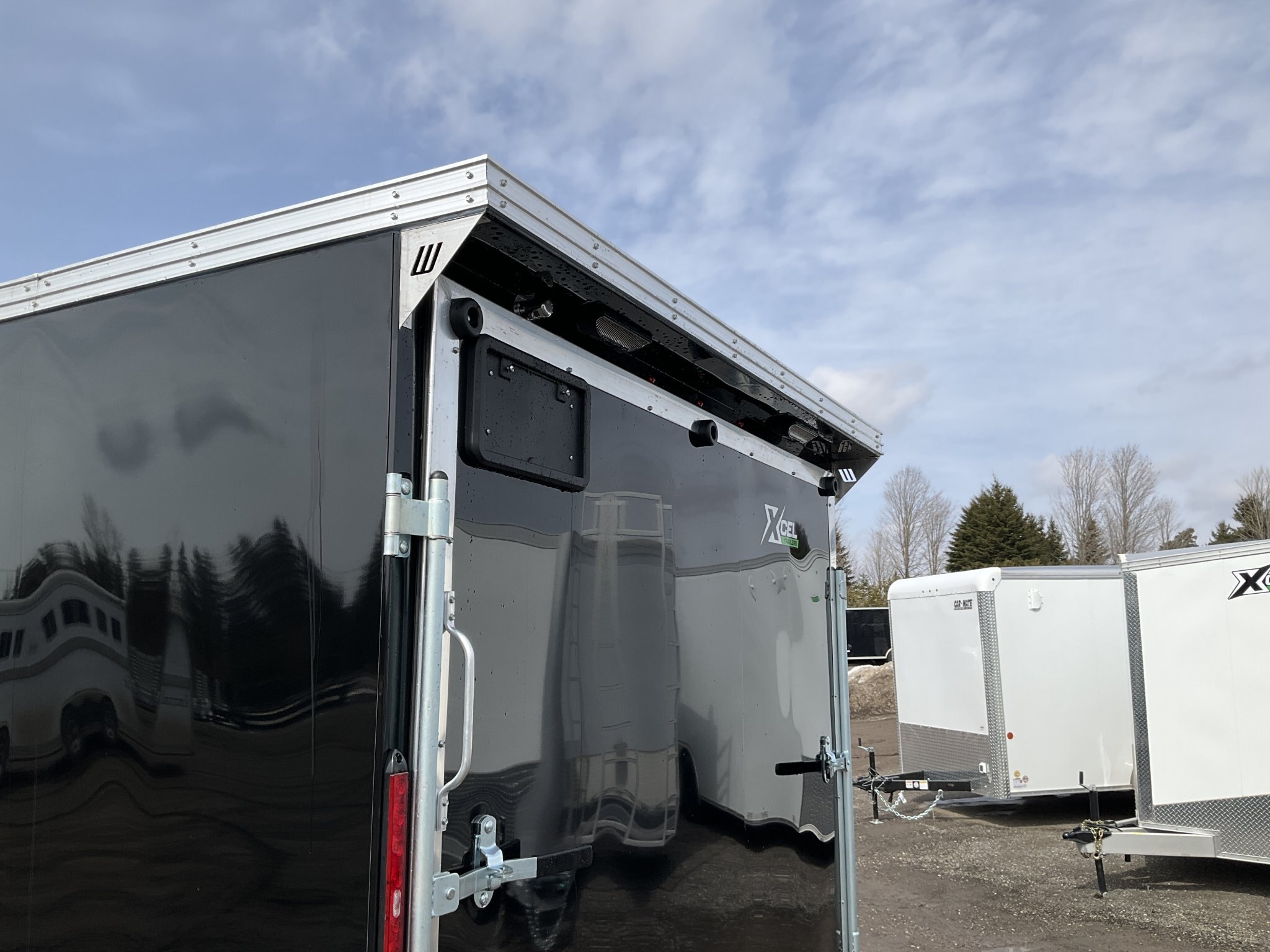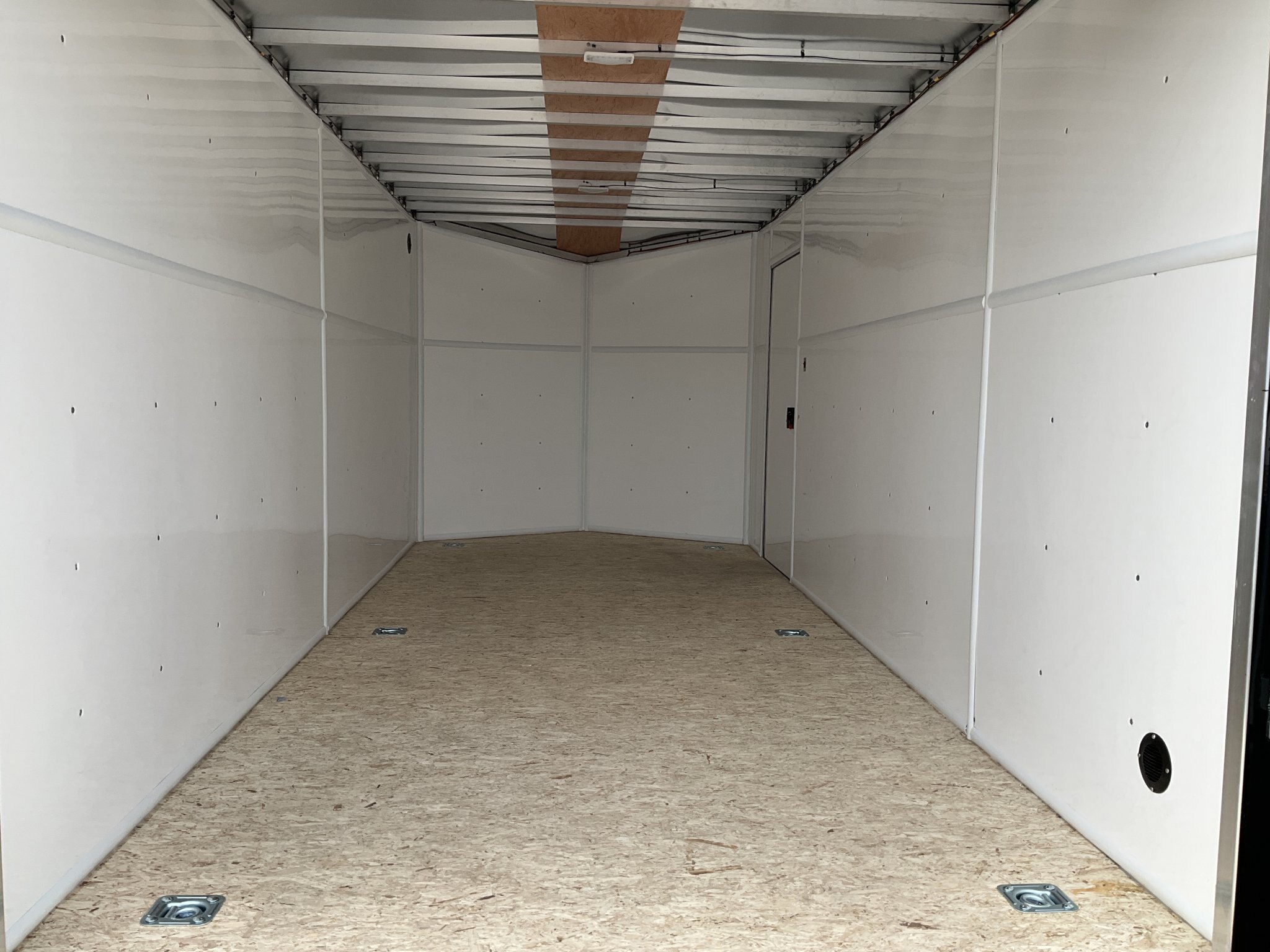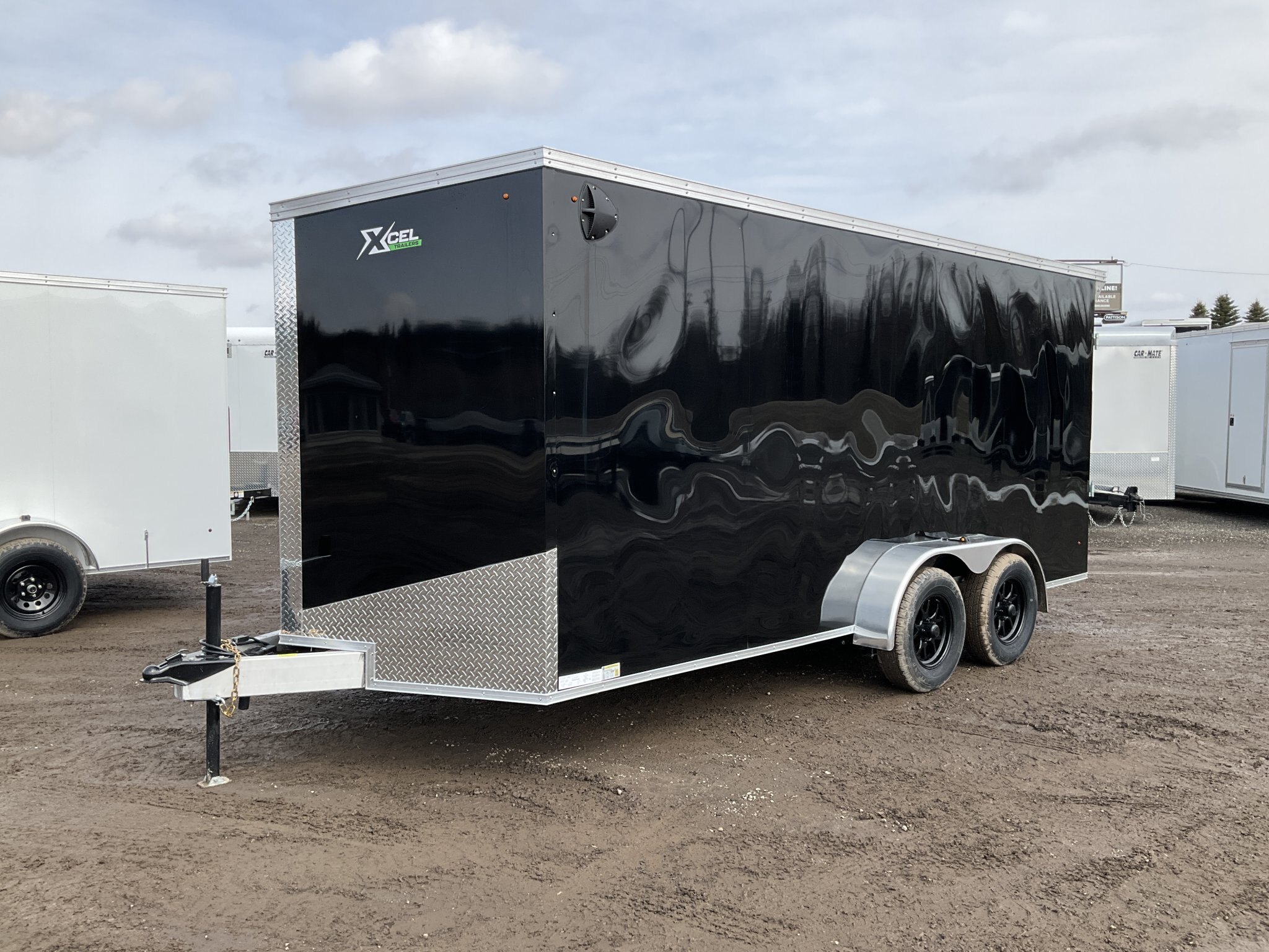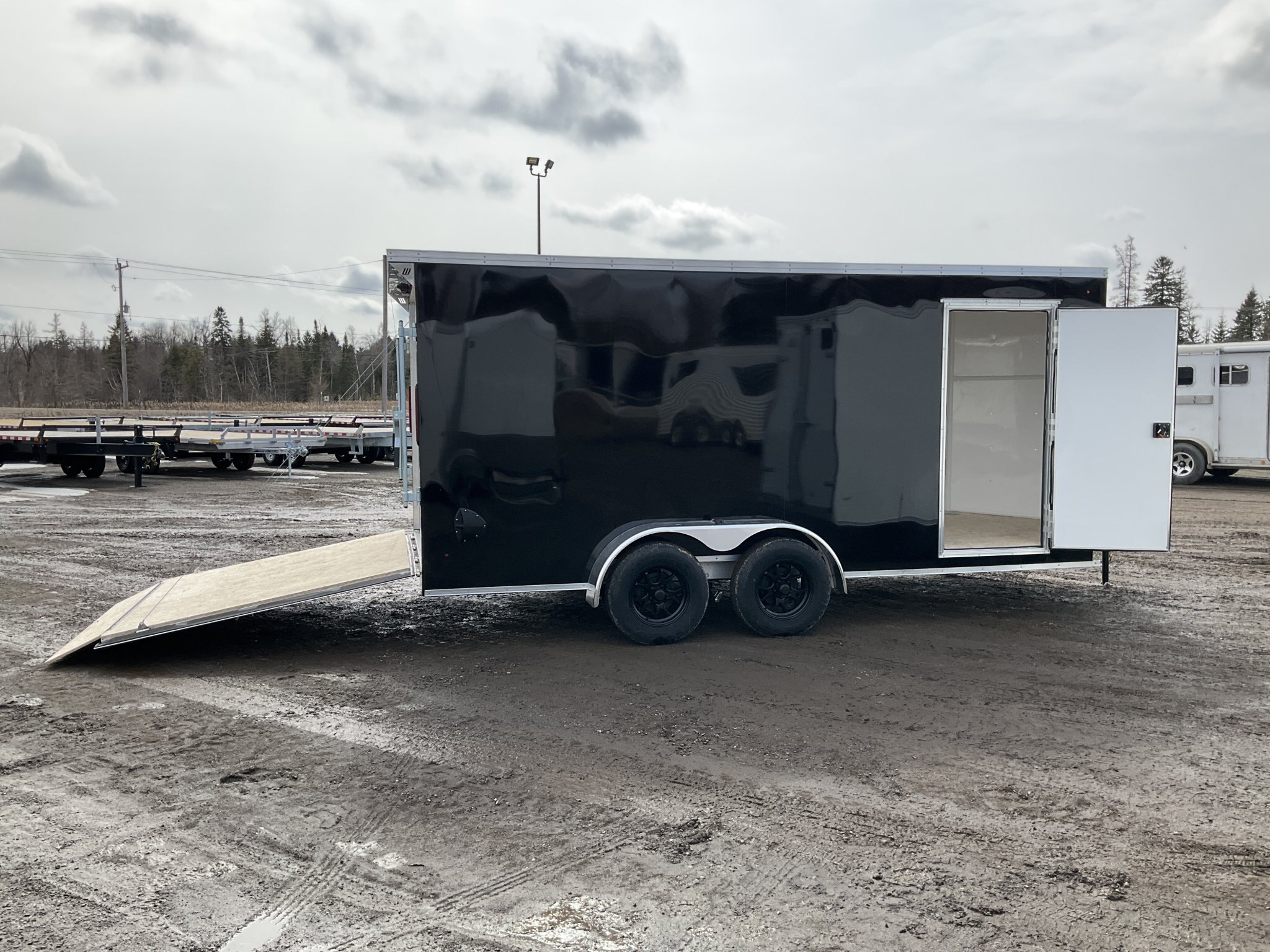 7000LB GVWR, 2 3500LB Spring Drop Axle with EZ Lube Hubs, Electric Brakes, 15 Inch Radial Tires, Electric Brakes, 2' Sloped V-Nose, 6'6"' Tall, .030 Black Screwless Exterior, 32" Side Man Door, Rear Ramp Door with Cable Assist, 1/4" White Lauan Walls, 3/4" Rainblock Wood Floor, Seamless Aluminum Roof, 16" On Centre Walls/Floor/Roof, 2 Wall Vents, 12V Dome Light and Switch, 6 D-Ring Tie Downs, Rear Spoiler with Integrated Lights, ATP Stone Guard, 2-5/16" Ball Coupler, A-Frame Tongue Jack with Sand Pad, Sealed LED Lighting